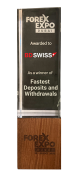ForexExpo Dubai AwardsThe 5th edition of the Forex Expo Awards celebrated the best performing forex businesses and brands in 2022. In recognition of our ability to provide a smooth and seamless user experience, BDSwiss received the award for "Fastest Deposits & Withdrawals"