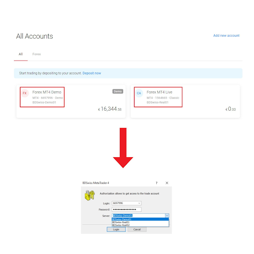 Schritt 2: Melden Sie sich mit Ihrer Kontonummer und Ihrem Passwort in der App an. Sie finden die Login-Nummer IhresTradingkontosin Ihrem BDSwiss Web-Dashboard.